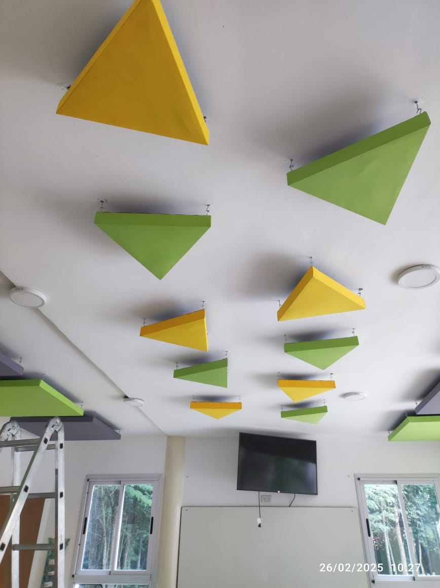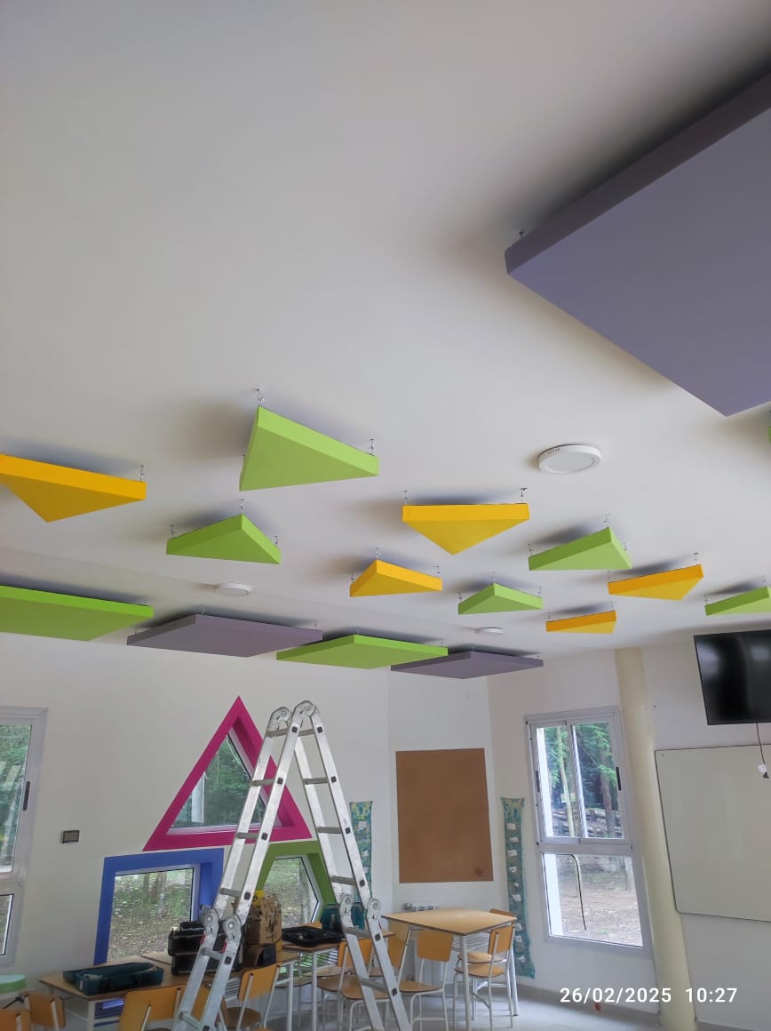 Panel acústico Triangular. Material acústico fonoabsorbente en placas enteladas, con marco de madera de calidad y compuesto con aislante acústico/térmico ignífugo lana de roca mineral. El producto se puede colgar directamente con un tornillo a pared con aplique integrado detras. Si necesitas un aplique en especial consúltanos antes. Lana de Roca Mineral: Colocamos el aislante apropiado para la función acústica y de la mejor calidad ya que trabajamos con los mismos en obras. Espesor: 25 a 50 mm Densidad: 40 kg/m3 La lana de Roca Mineral, a comparación de la lana de vidrio, no es tóxica, no se oxida ni se pudre y contiene un alto índice de propiedades acústicas en graves y agudos. Seguridad: El 90% del panel está compuesto por lana de roca, material naturalmente ignífugo. Para proyectos que requieran una certificación 100% ignífuga (incluyendo textiles y tratamientos especiales), solicite asesoramiento y cotización personalizada. Colores: La disponibilidad de tonos está sujeta al stock vigente de nuestros proveedores textiles. Recomendamos consultar la disponibilidad de colores antes de confirmar su compra.